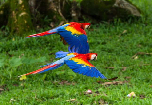 Comme bien d’autres animaux, les aras ont une vie sociale et culturelle intense, remplie d’événements qui ont du sens pour eux. Ici des aras rouges au Costa Rica.