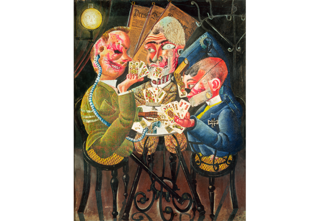 Les Joueurs de skat, d’Otto Dix (1920), qui représente trois gueules cassées, fait partie d’une série de quatre tableaux relevant du mouvement artistique de la Nouvelle Objectivité. © Bridgeman