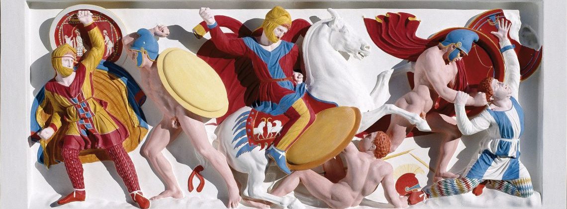 Lorsqu’il fut découvert, en 1887, le sarcophage dit d’Alexandre avait conservé des teintes vives. Voici une reconstitution de la polychromie d’origine, réalisée en 2007.