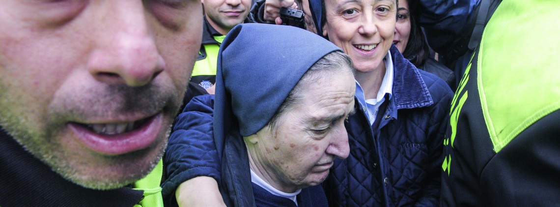 Sœur María lors de sa première comparution, le 12 avril 2012. Aujourd’hui décédée, la religieuse fut en charge des adoptions à la maternité Santa Cristina de Madrid entre 1970 et 1980. Elle est l’une des rares personnes à avoir été citées à comparaître dans une affaire de bébés volés.