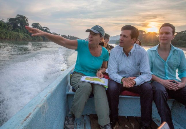 Julia Carabias explique les enjeux de la forêt lacandone au président de la République mexicaine Enrique Peña Nieto et au gouverneur de l’État du Chiapas, en décembre 2016.