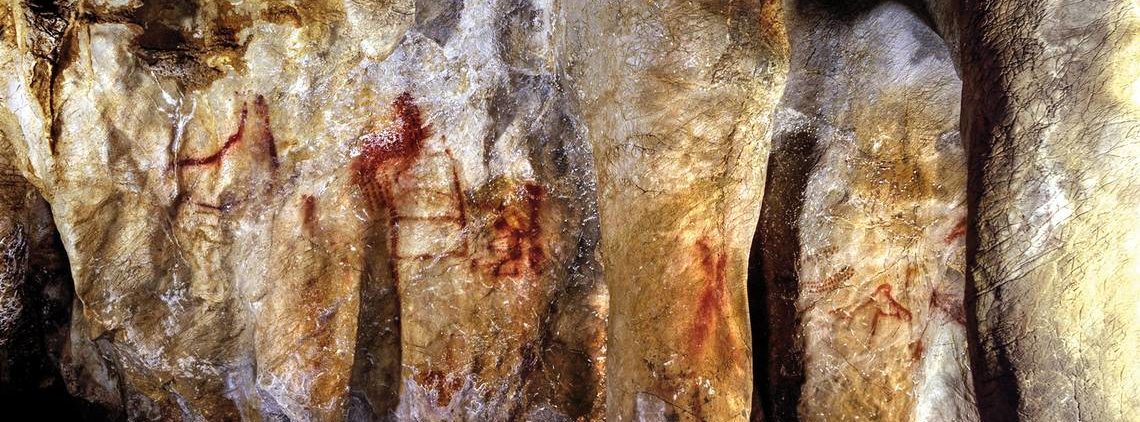 Dans la grotte de La Pasiega (nord de l’Espagne). Le motif en forme d’échelle (barres verticales et horizontales) remonte à plus de 64 000 ans, selon Dirk Hoffmann.