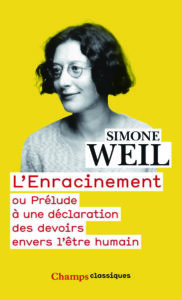 L’enracinement. Prélude à une déclaration des devoirs envers l’être humain de Simone Weil, Flammarion, 2014