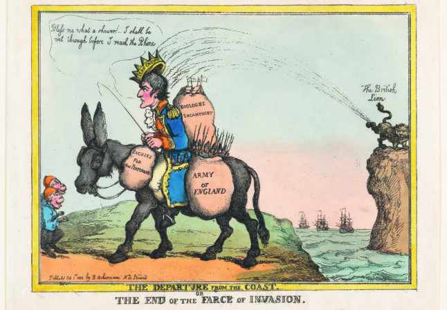 « Le départ de la côte et la fin de la farce de l’invasion ». Confronté aux armées de la Troisième Coalition, Napoléon renonce en août 1805 à envahir l’Angleterre.